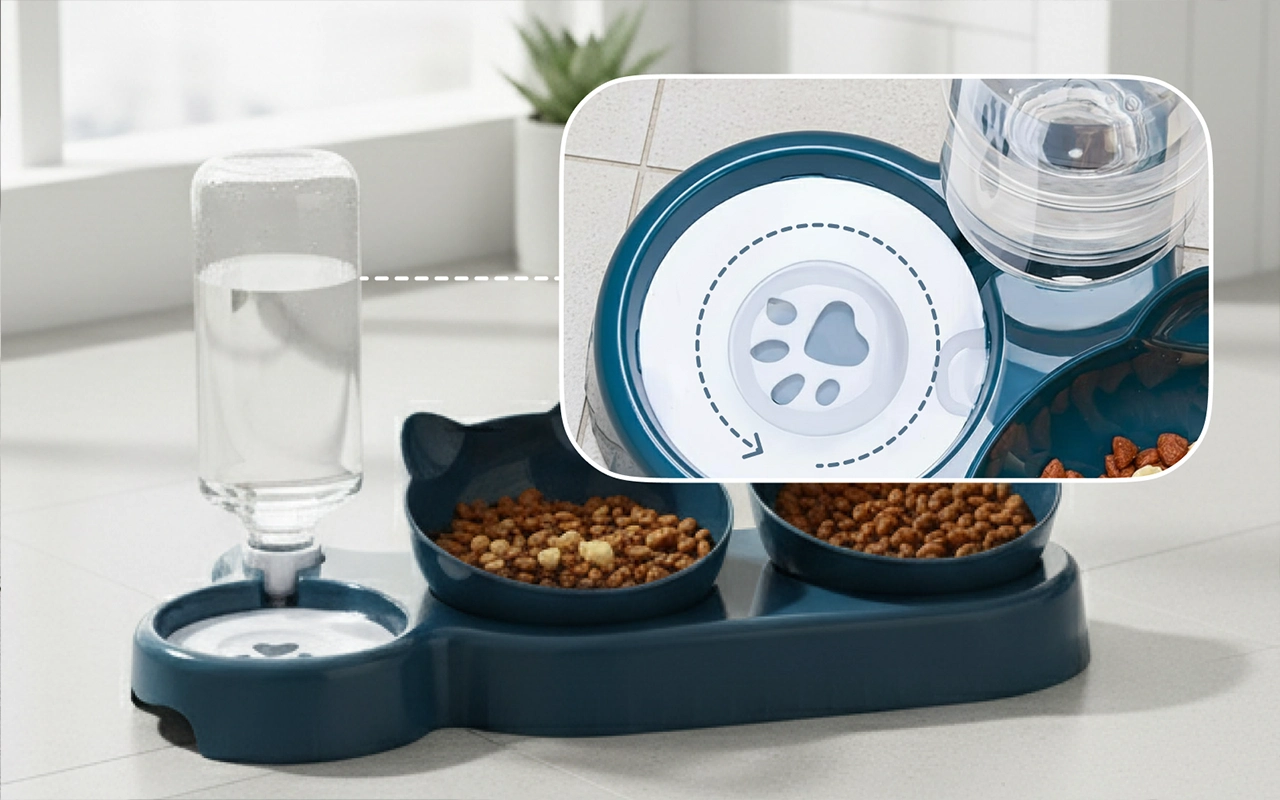 Aftagelige skåle kan skilles ad for hurtig og nem rengøring. Alt forbliver hygiejnisk med mindre besvær for ejeren.