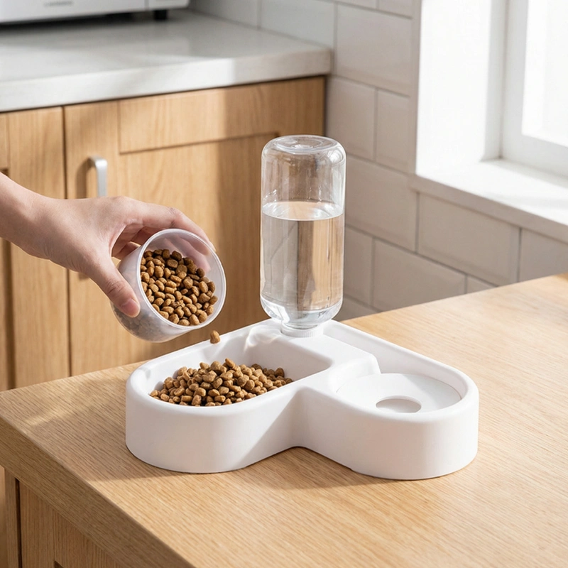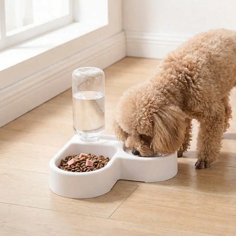 2-i-1 hundeskål automatisk vanddispenser foderstation til kæledyr