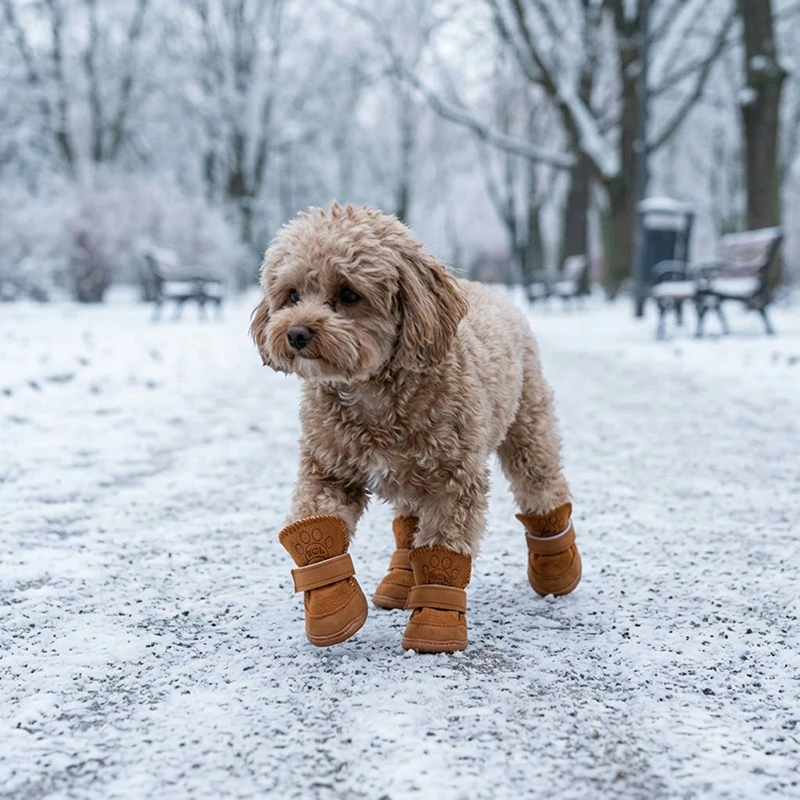 4stk Hundesne Støvler Varme Skridsikre Vinter Sko