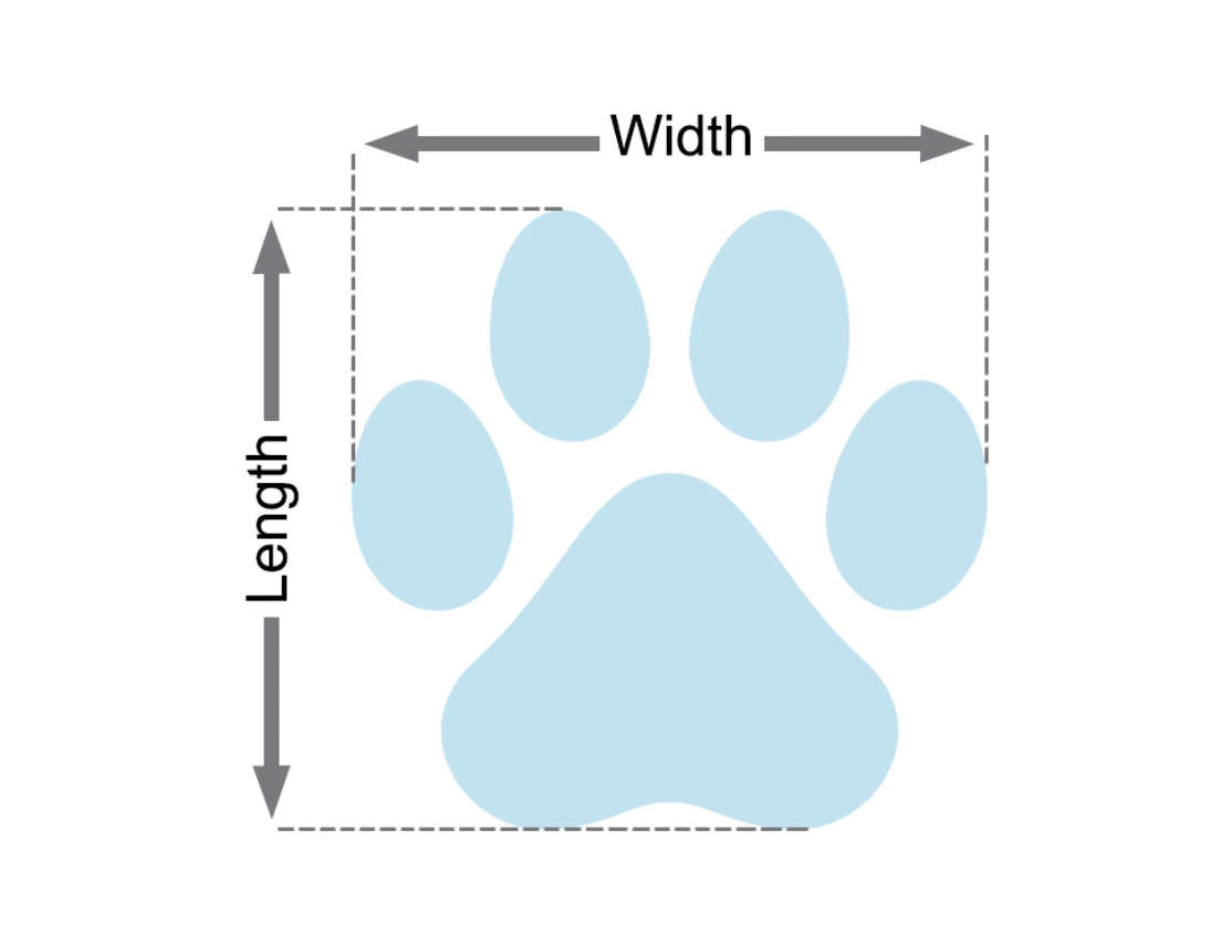• 1. Placer din hunds pote på et stykke papir og tegn rundt om, så du får med både tæer og negle.