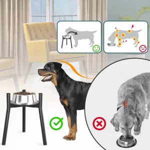 Når kæledyr spiser fra traditionelle skåle i gulvhøjde, skal de ofte bøje sig. Dette kan få mad til at sidde fast i halsen og føre til kvælning. Vores skålestativ gør det muligt for hunde at spise i en mere naturlig, oprejst position.