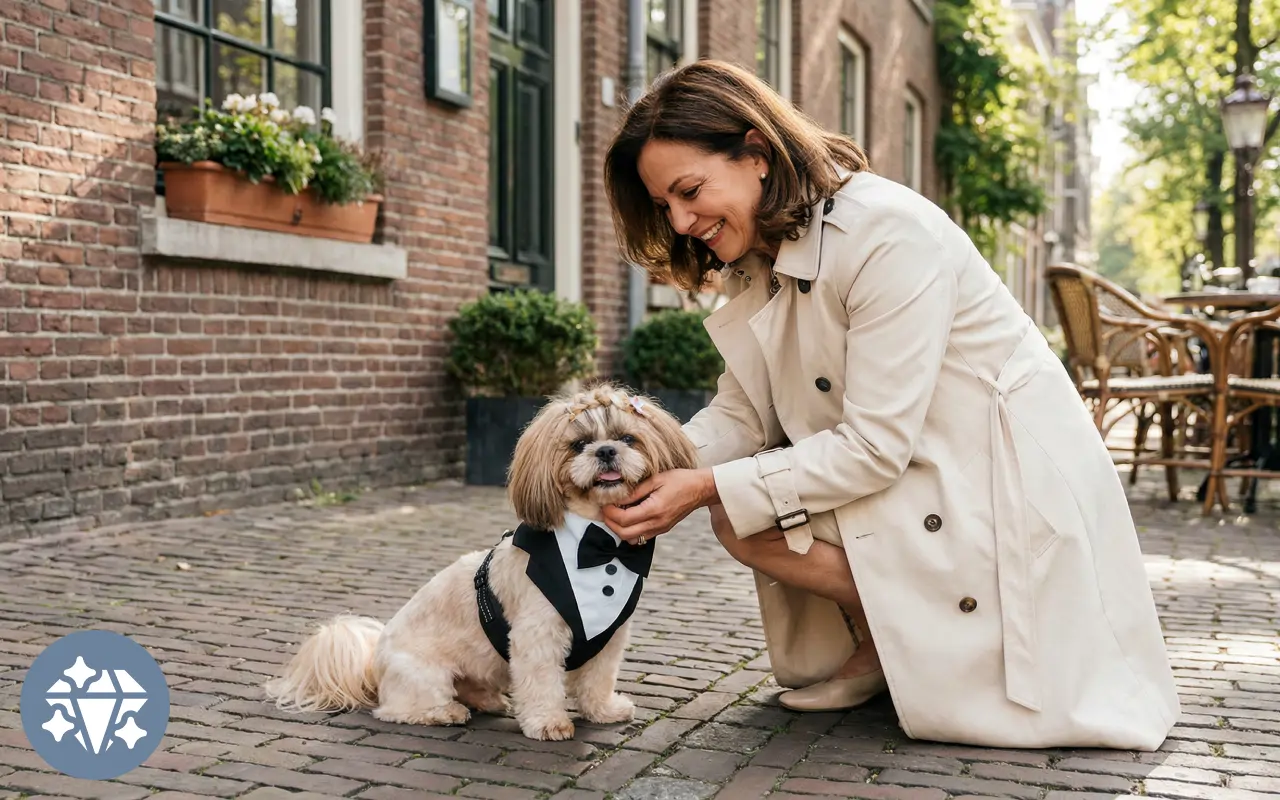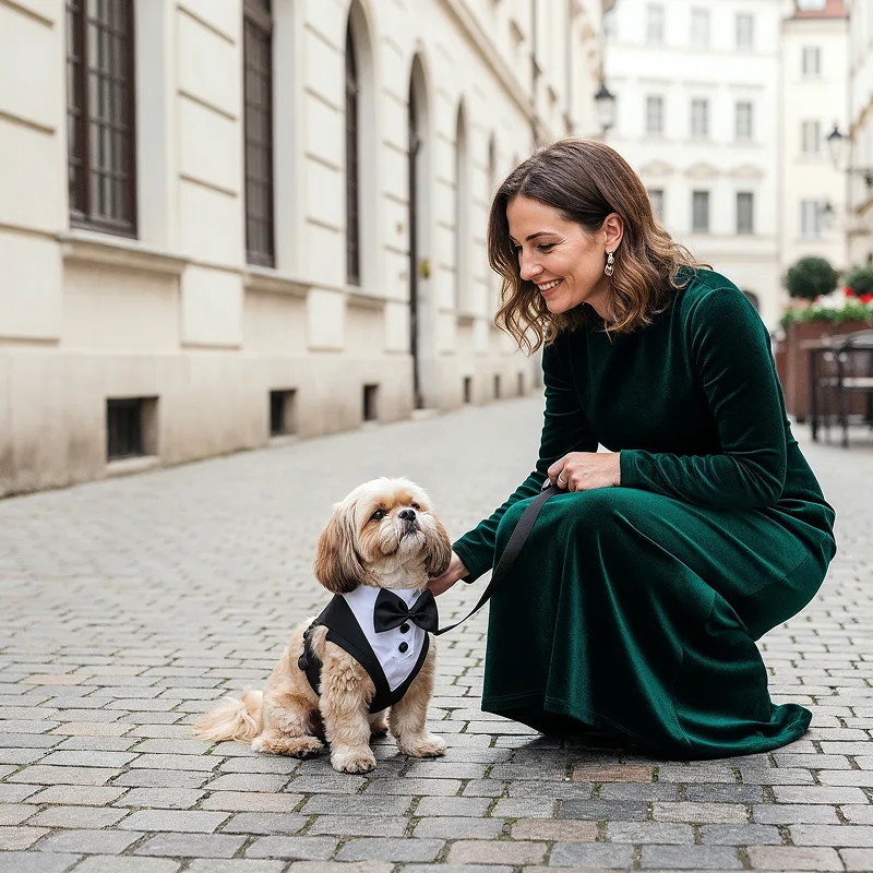 Smoking-selen er så sød! Sad tæt på min hund på få sekunder. Giver bare det rette pift til familiefotos og forhindrer hende i at trække for meget.