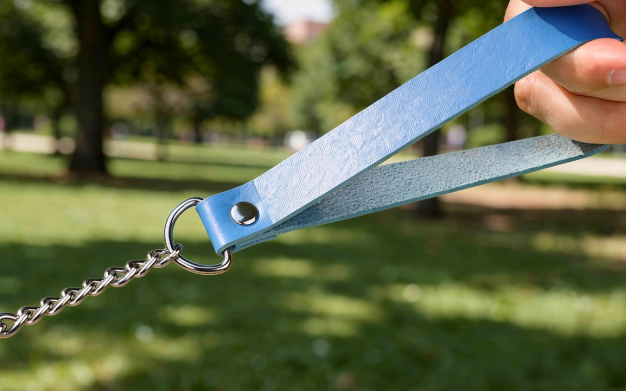 Elsker denne snor til min labrador! Det behagelige lædergreb føles rart, glider ikke, og krogen drejer, så snoren aldrig bliver filtret. Rigtig stærkt materiale, og farven er klar, hvilket hjælper, når vi er i parken.