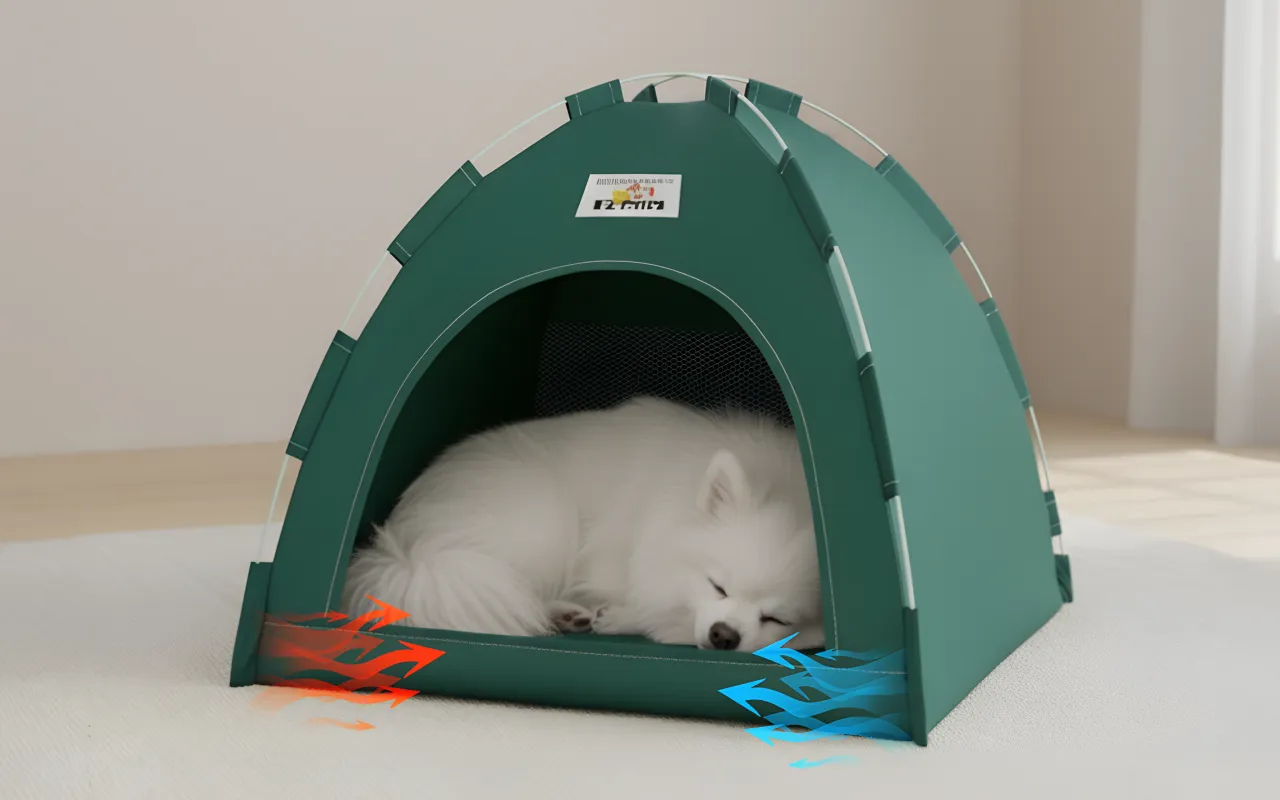 Kæledyr forbliver kølige om sommeren og varme på kølige nætter. Den unikke måtte tillader luft at cirkulere, mens den bevarer hyggen indeni.
