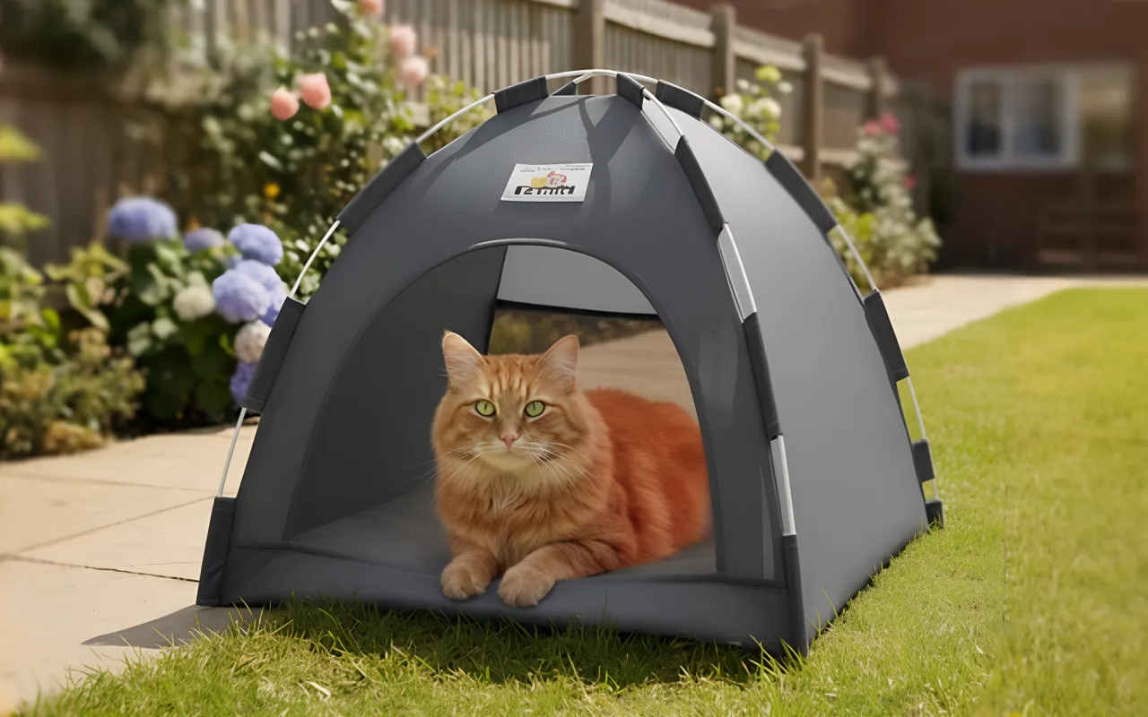 Denne iglo kan pakkes helt lille sammen, men foldes hurtigt ud. Min kat elsker at kigge ud og føle sig tryg indeni.