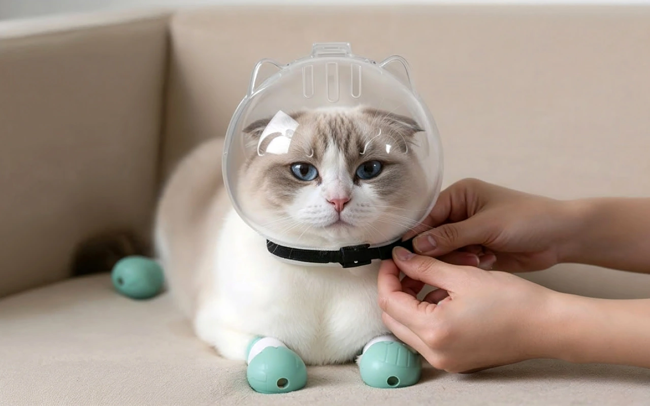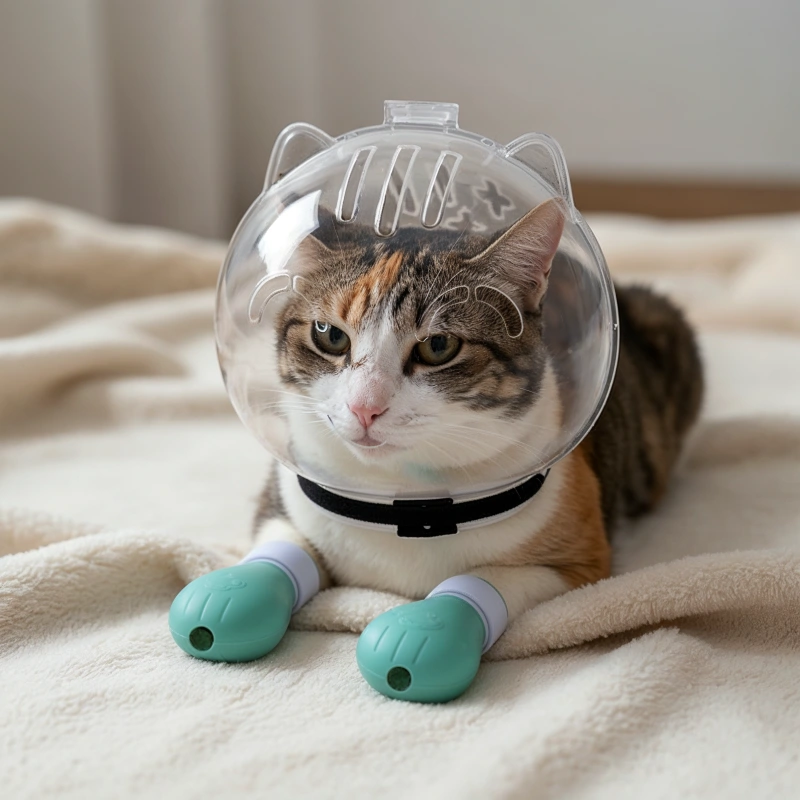 Anti-bide mundkurv til kat – Beskyttelse mod kløer og bid – Anti-ridsesokker til kæledyr