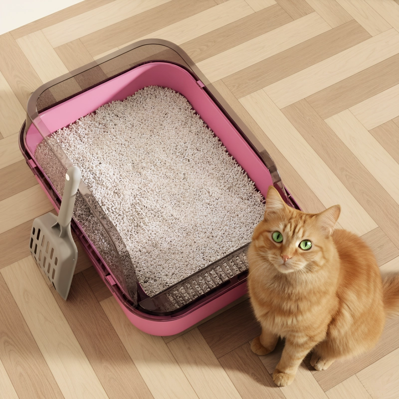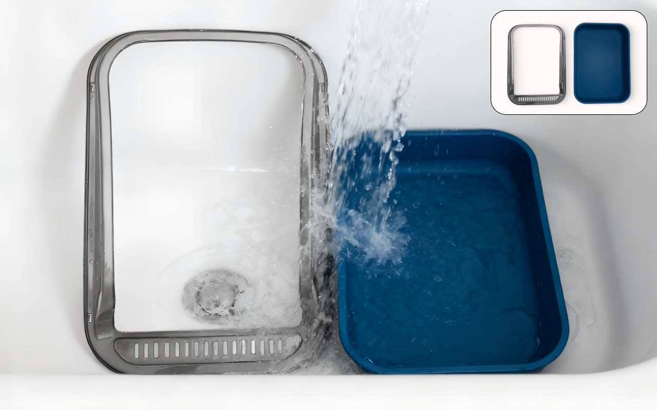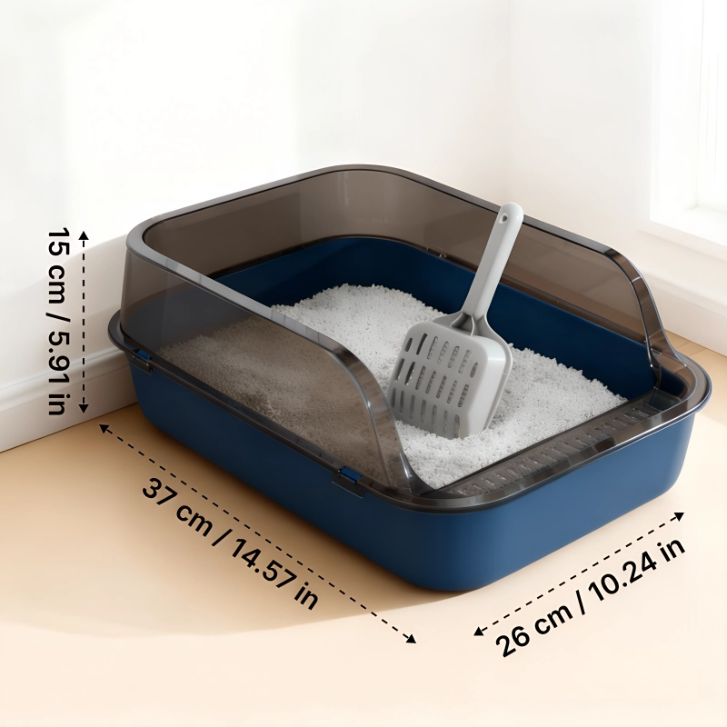 Høje sider og smarte barrierer holder altid kattegruset inde. Gulvene forbliver pletfri, så rengøringen føles hurtig og let.