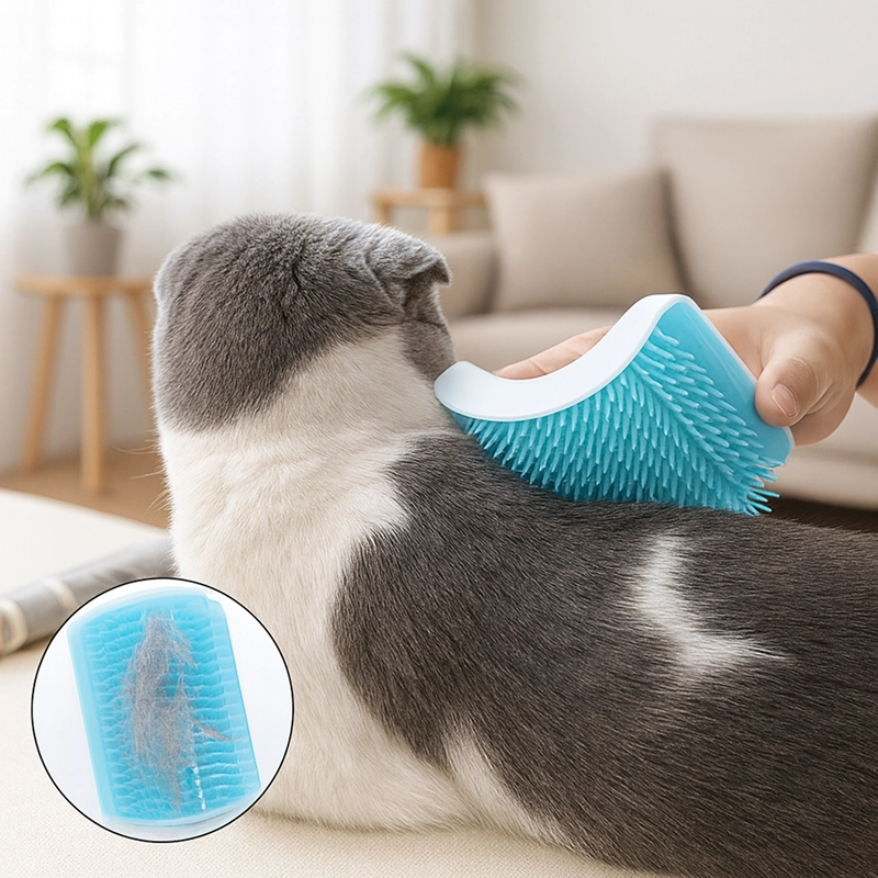 Primdog Kattehjørnebørsten fjerner løse hår, mens dit kæledyr nyder blide strøg. Børster hjælper med at holde overflader rene og pæne hver dag. Vælg en farve, der passer til dit rum, og gør soigneringen nem for alle.