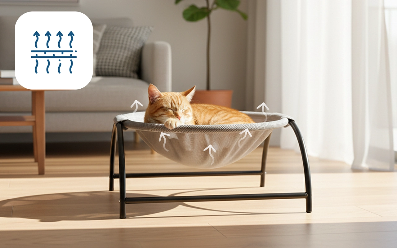 Mesh-designet tillader luftgennemstrømning og forhindrer varmeophobning. Katte forbliver afslappede, selv på varme dage indendørs.