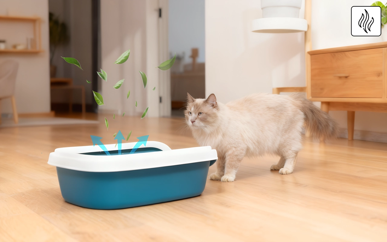 Drys blot et par perler over kattebakken for vedvarende friskhed. Der kræves ingen ekstra trin eller værktøjer for at opnå gode resultater.