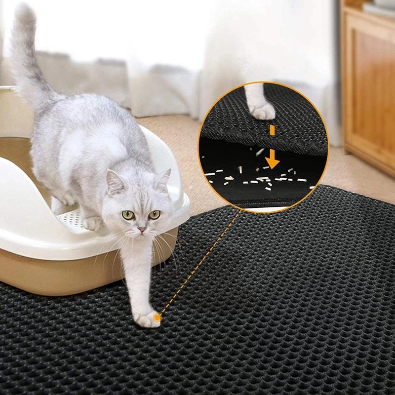 Blød tekstur føles behagelig under fødderne og beskytter sarte poter. Katte nyder at træde på måtten efter et besøg i bakken.