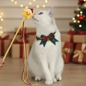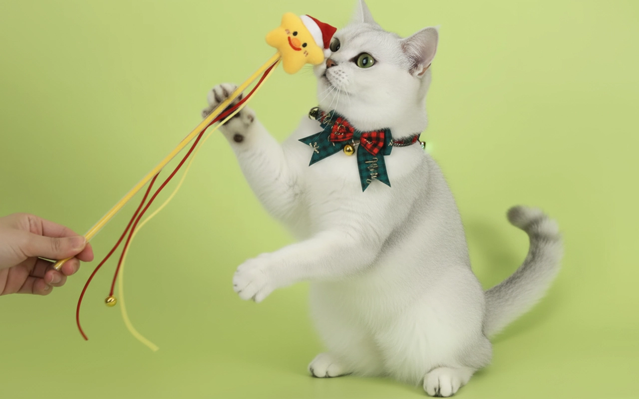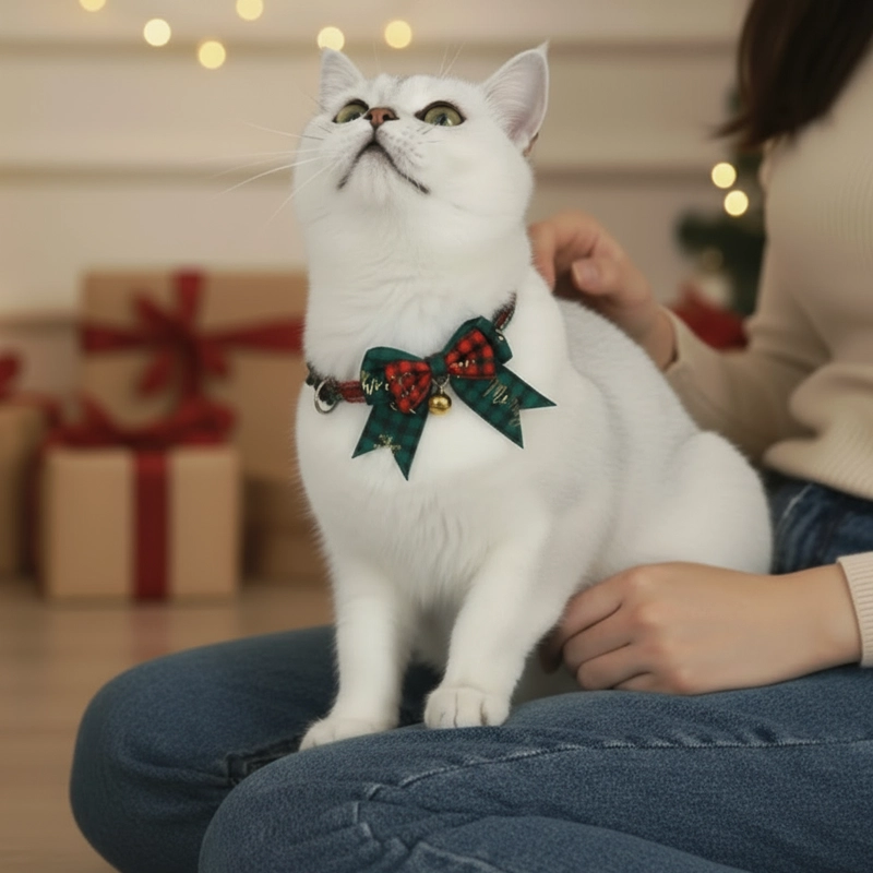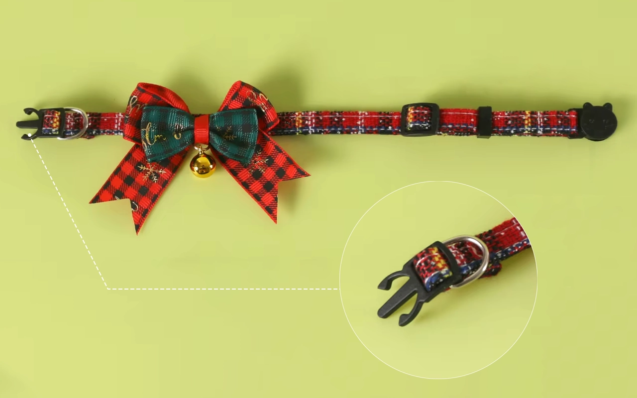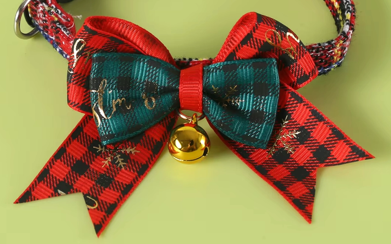 Min kat ser ekstra sød ud denne jul med hendes nye sløjfe! Det ternede mønster er super sjovt, og den gyldne klokke ringer, når hun løber rundt.