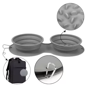 Mine to hunde kan spise og drikke side om side nu! Skålene glider aldrig rundt, selv på bagsædet i min bil. Super praktisk til alle vores eventyr.