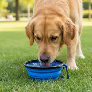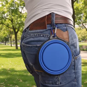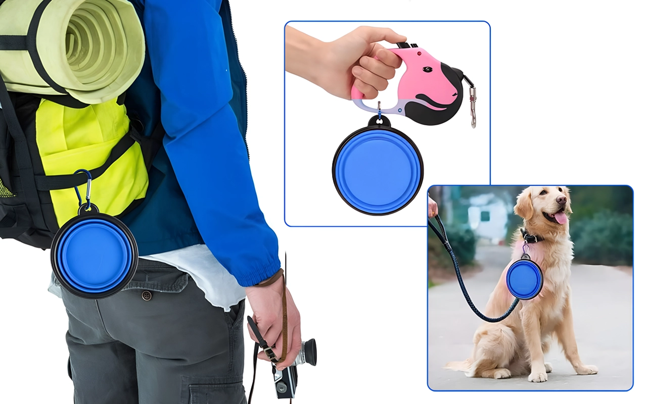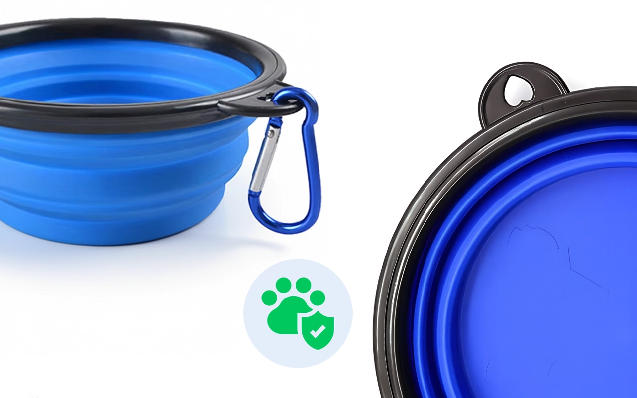 Denne skål passer lige i min rygsæk, og min hund elsker den! Nem at rengøre, og jeg kan klipse den på snoren til parkdage.