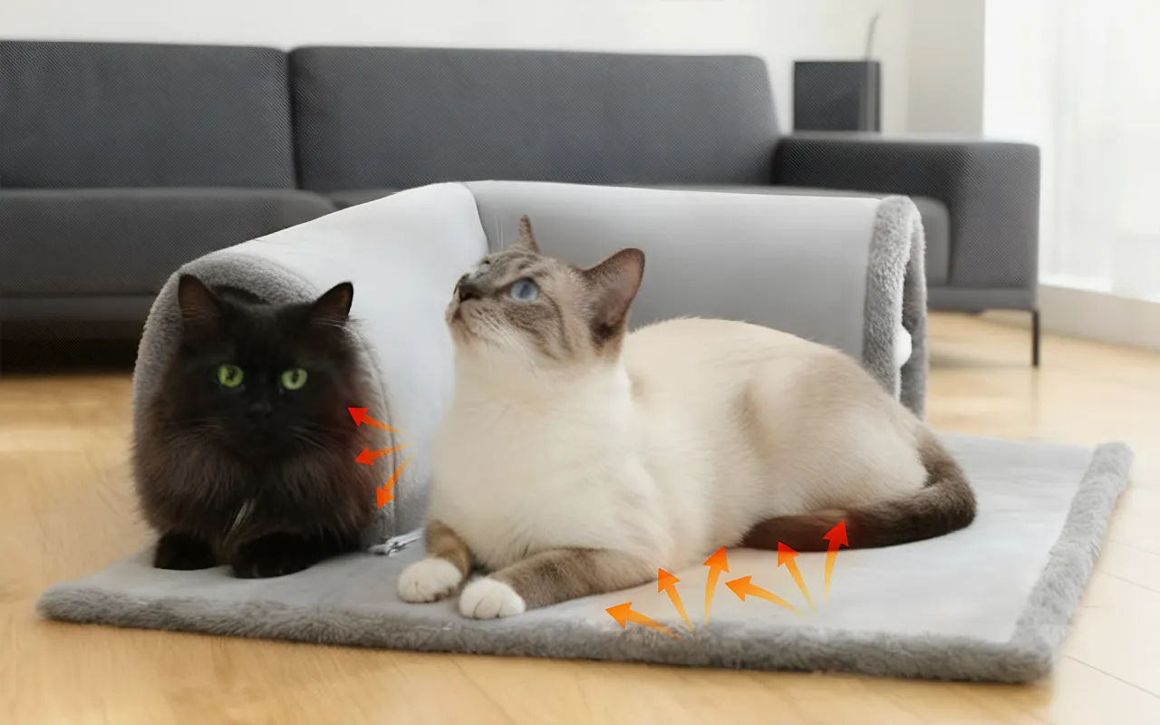 Plysstof holder kæledyret lunt i de kolde måneder indendørs. Katte nyder at slappe af i komfort uden at fryse.