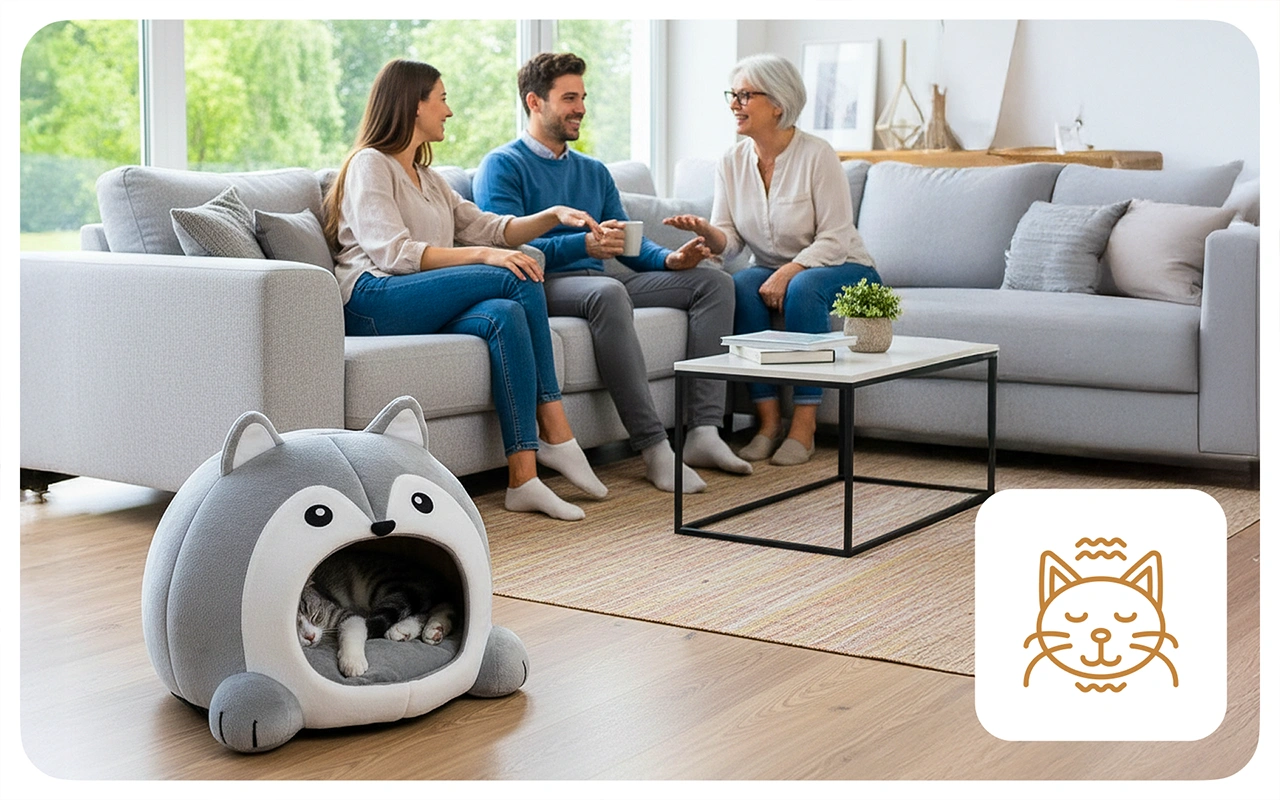 Super sted til en lang lur! Den lukkede form får mit kæledyr til at føle sig beskyttet for høj lyd og travle dage.