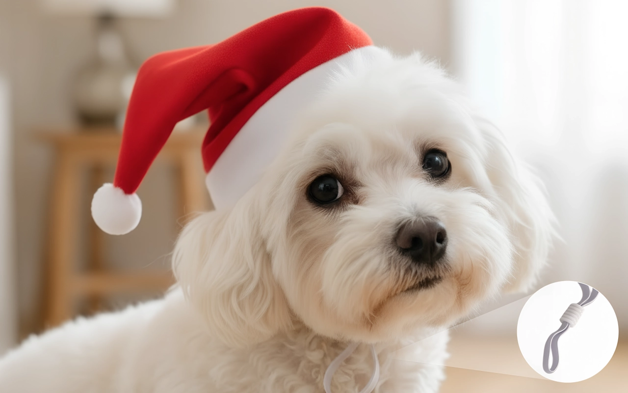 Denne hat sikrer hurtig påklædning uden besvær eller stress. Sæt den på på få sekunder, og dit kæledyr er klar til julestemning.