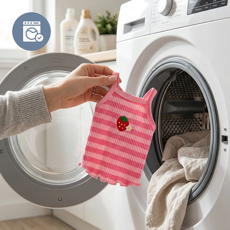 Maskinvaskbart materiale gør rengøringen enkel hver uge. Farverne forbliver klare, og stoffet forbliver pænt efter vask.