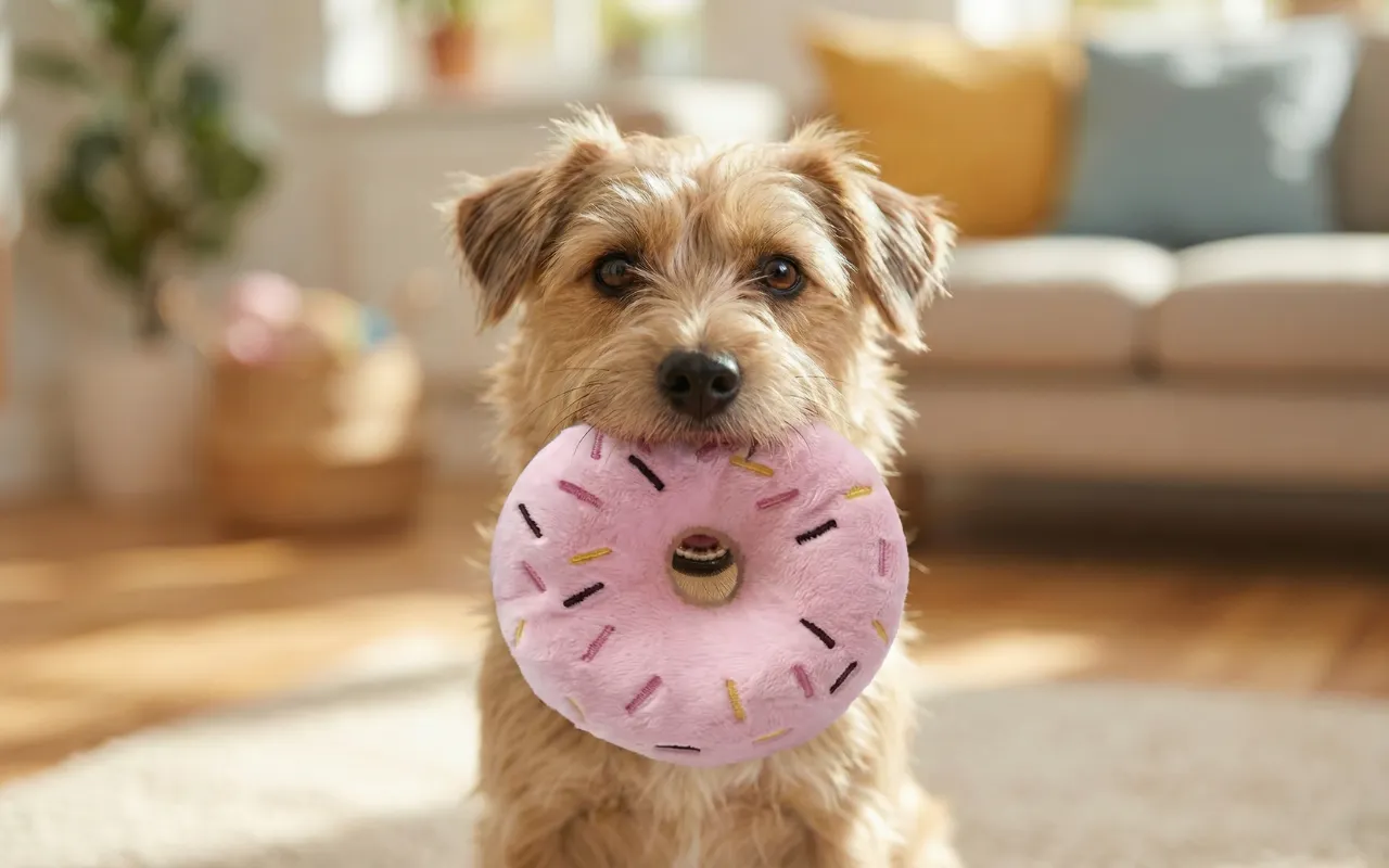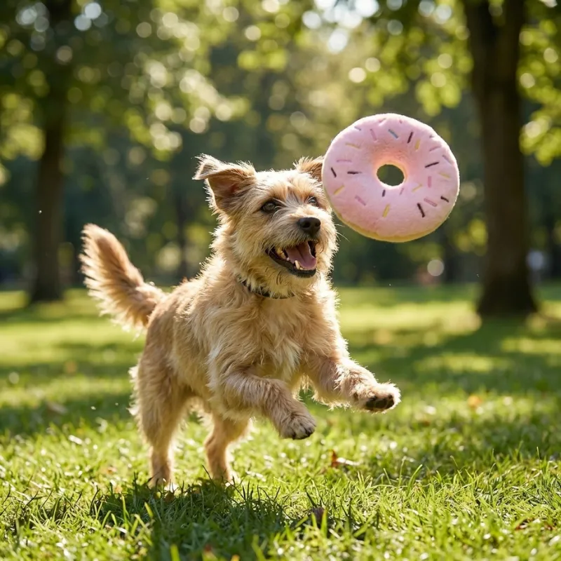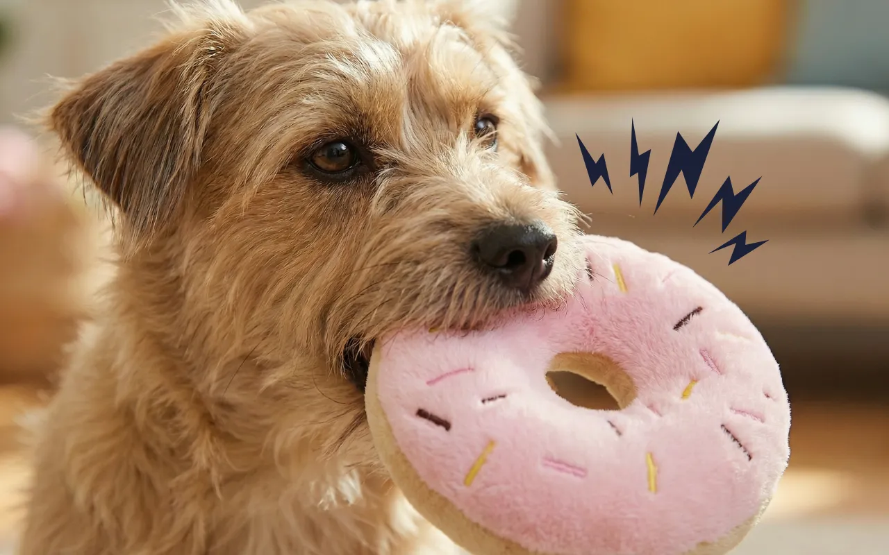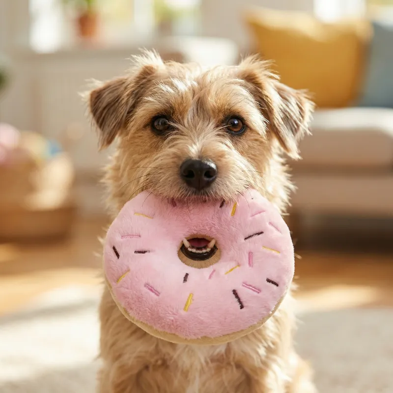 Sødt plysdonut hundelegetøj med pivelyd