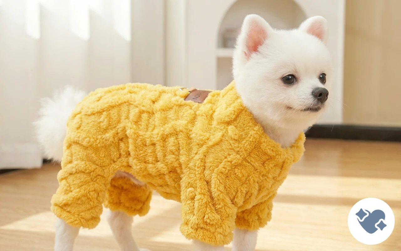 Lyse farver og blødt stof får min hund til at skille sig ud i parken. Holder ham afslappet og smart, selv på blæsende dage.