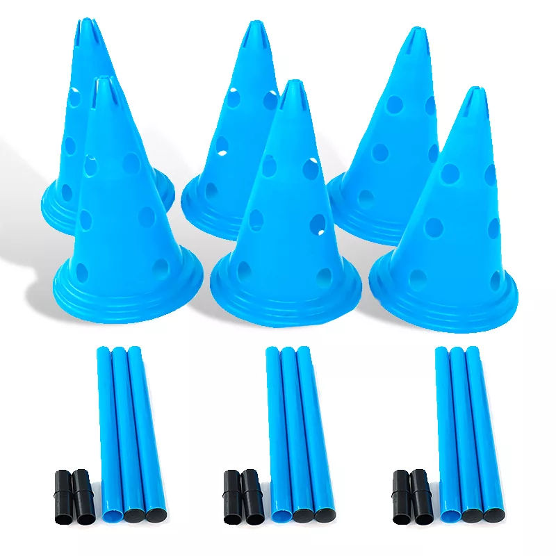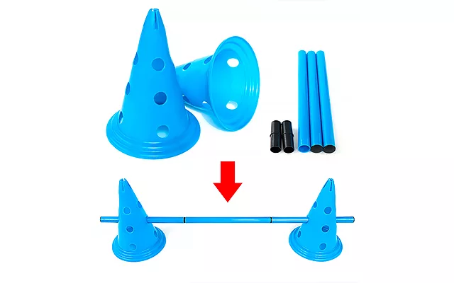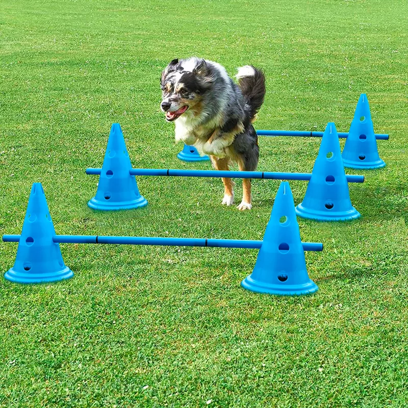 Sættet indeholder alle de nødvendige dele: kegler, pæle og forhindringer. Alt du behøver for at skabe en spændende agilitybane medfølger.