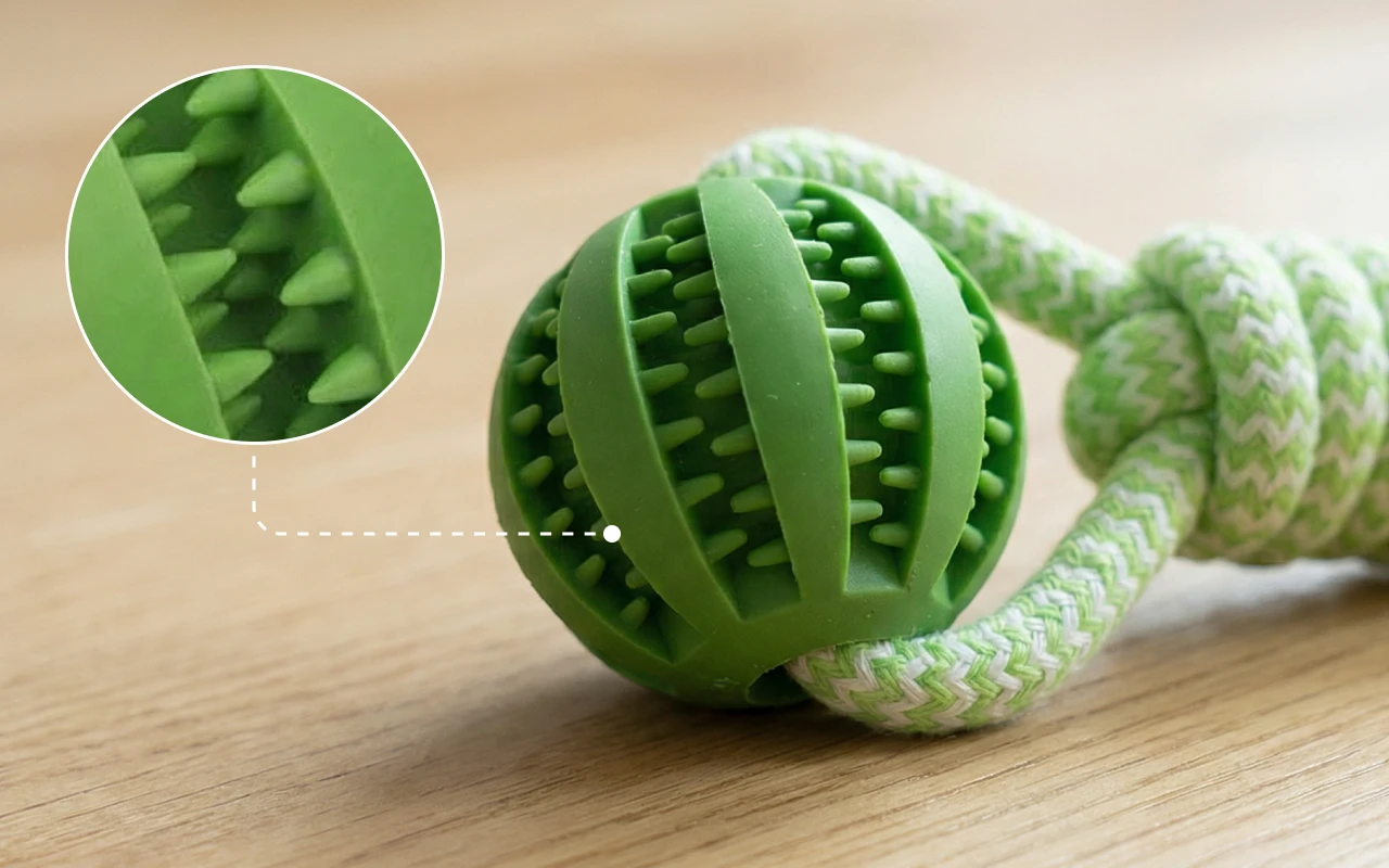 Naturlig gummi modstår huller, så kæledyrene forbliver sikre, når de leger. Den ikke‑giftige opbygning beskytter dyrene mod skadelige kemikalier under brug.