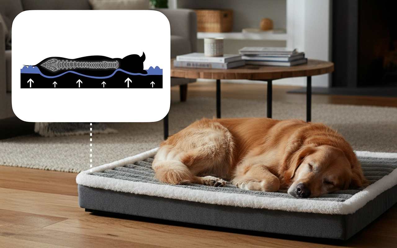 Æggekasse-skum støtter kæledyr og lindrer ubehag fra tryk. Kæledyr oplever lettere bevægelse og mindre stivhed efter at have sovet.
