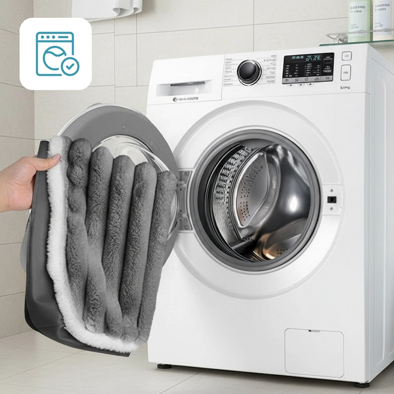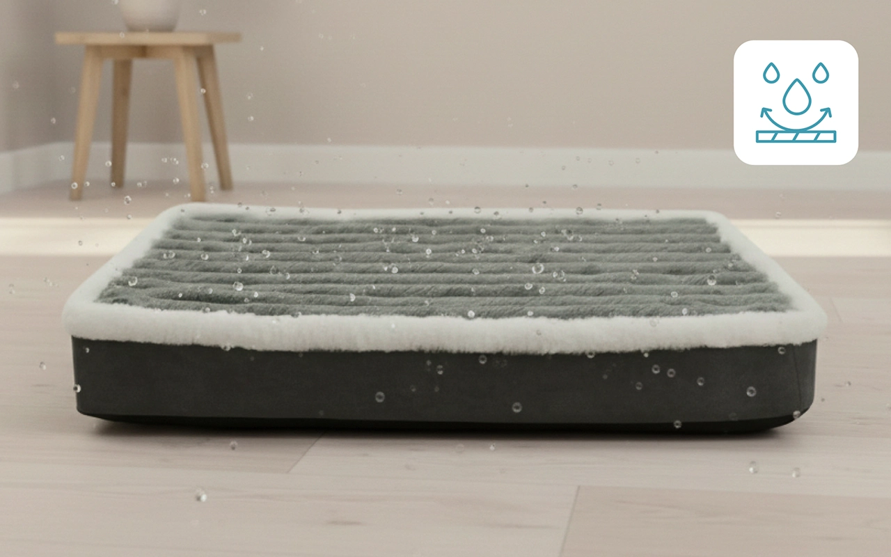 Tre holdbare lag blokerer fugt og forhindrer lækager. Spild og uheld vil ikke beskadige dit kæledyrs soveplads.