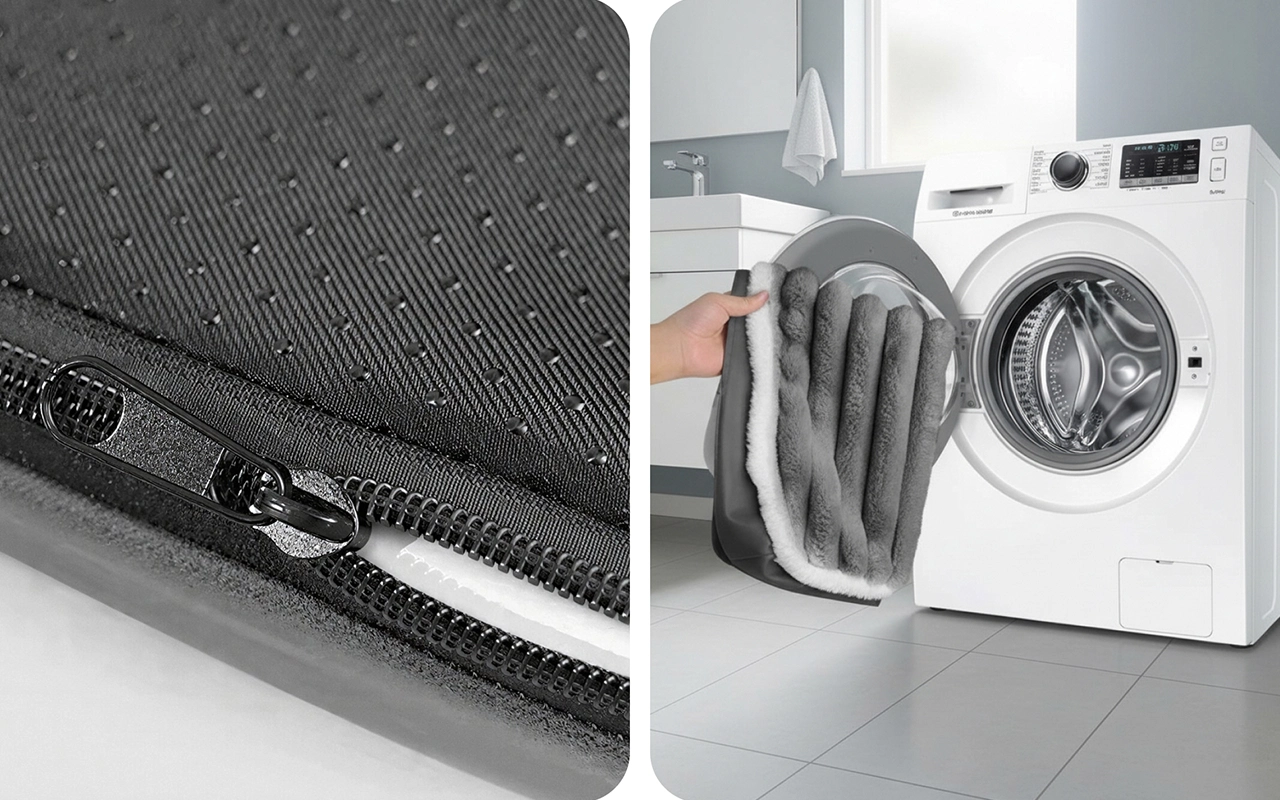 Et lynlåsbetræk tages hurtigt af for stressfri vask. Nyd et renere hjem og friskere luft med mindre indsats.