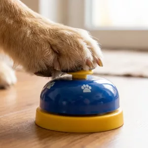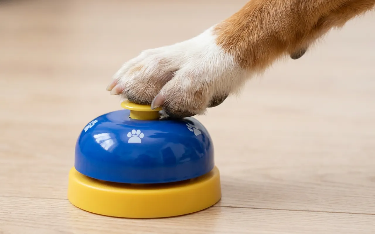Fin lille klokke, vores corgi lærte hurtigt at trykke, når han vil gå tur.