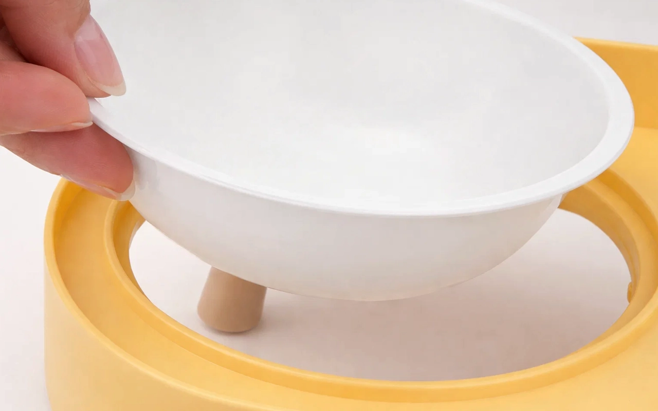 Aftagelige skåle løftes nemt ud i ét trin for hurtig vask. Ikke mere skrubning eller problemer med fastgroede madrester.