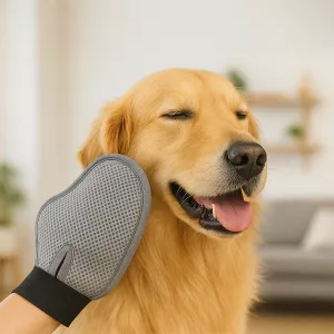 Denne handske er et stort hit hjemme hos os. Min golden plejede at hade at blive børstet, men nu tror hun, hun får massage. De bløde spidser hjælper virkelig.