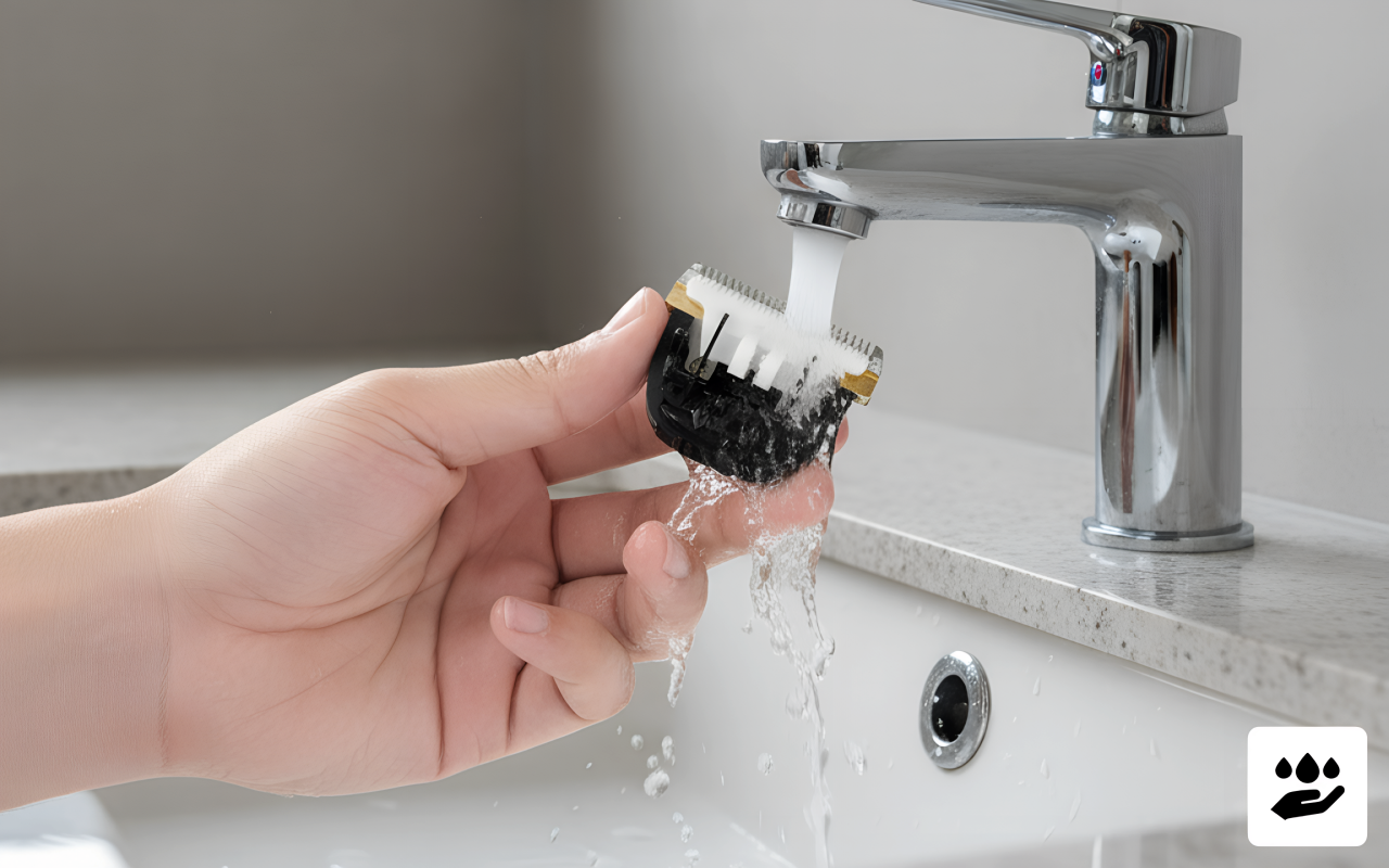 Aftagelige dele skylles hurtigt under vand for hygiejne. Hold hver trimning frisk og pæn uden besvær.
