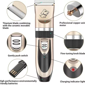 Hundepudsekittet tilbyder en alsidig og pålidelig måde at holde dit kæledyr velplejet. Det leveres med en let og kraftfuld klipper. Den klipper sikkert og effektivt gennem dit kæledyrs yderpels for at nå underpelsen, forebygge sammenfiltring og knuder.