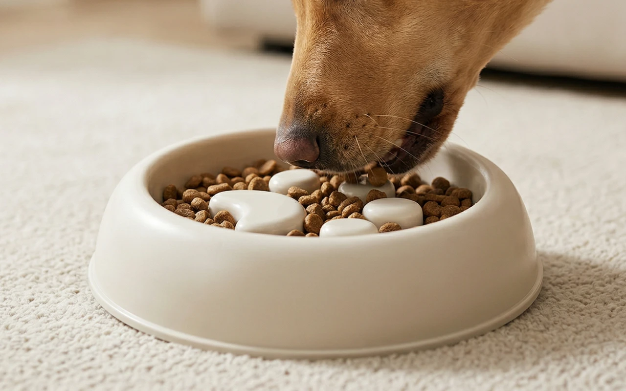 Langsommere spisning hjælper maden med at blive skånsomt nedbrudt i din pelsede vens mave. Ikke flere oppustede maver eller ubehagelig luft i maven efter måltider.