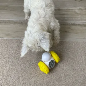 Primdog Feeder Toy har en smart robot-tumbler form. Legetøjets selvvægtede balance gør, at det kan svinge frem og tilbage uden ydre kraft, hvilket holder din hund underholdt.