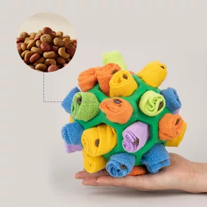 dog snuffle toy, food dispensing toy, dog treat dispenser, dog treat ball, treat dispensing dog toy, snuffle ball for dogs