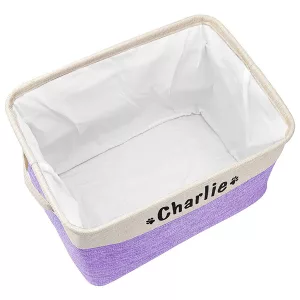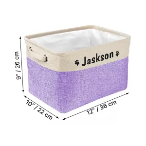 Organiser din hunds ting med vores robuste, stilfulde opbevaringskurv. Den hjælper dig med at frigøre plads og bevare orden i hjemmet. At have dit kæledyrs navn på kurven gør den helt unik.