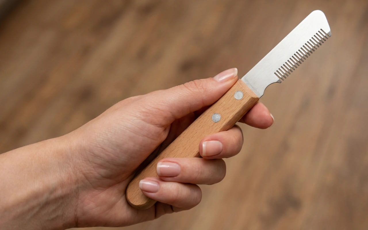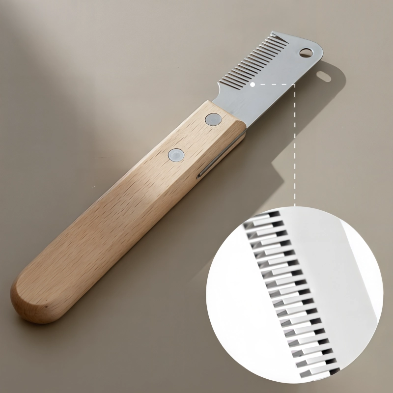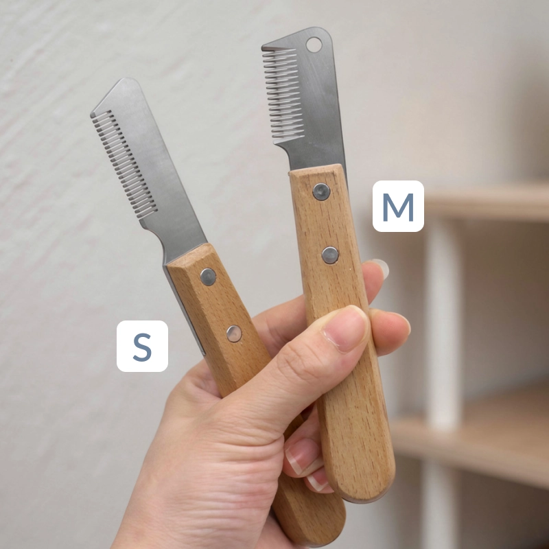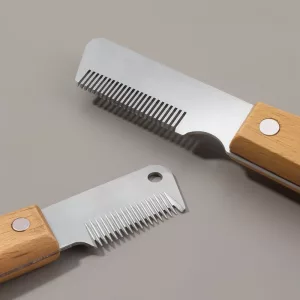 Trimme-kniv til hunde – pelshårsfjerner og plejeværktøj med træhåndtag