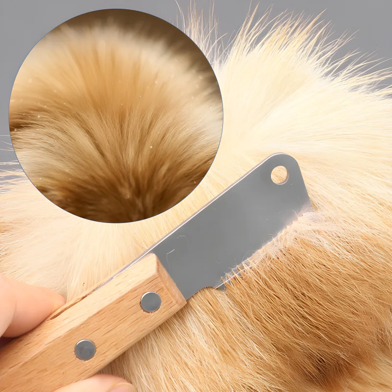 Det solide træhåndtag forbliver sikkert, selv når det er fugtigt. Få præcis kontrol for en fejlfri pelsplejeoplevelse.