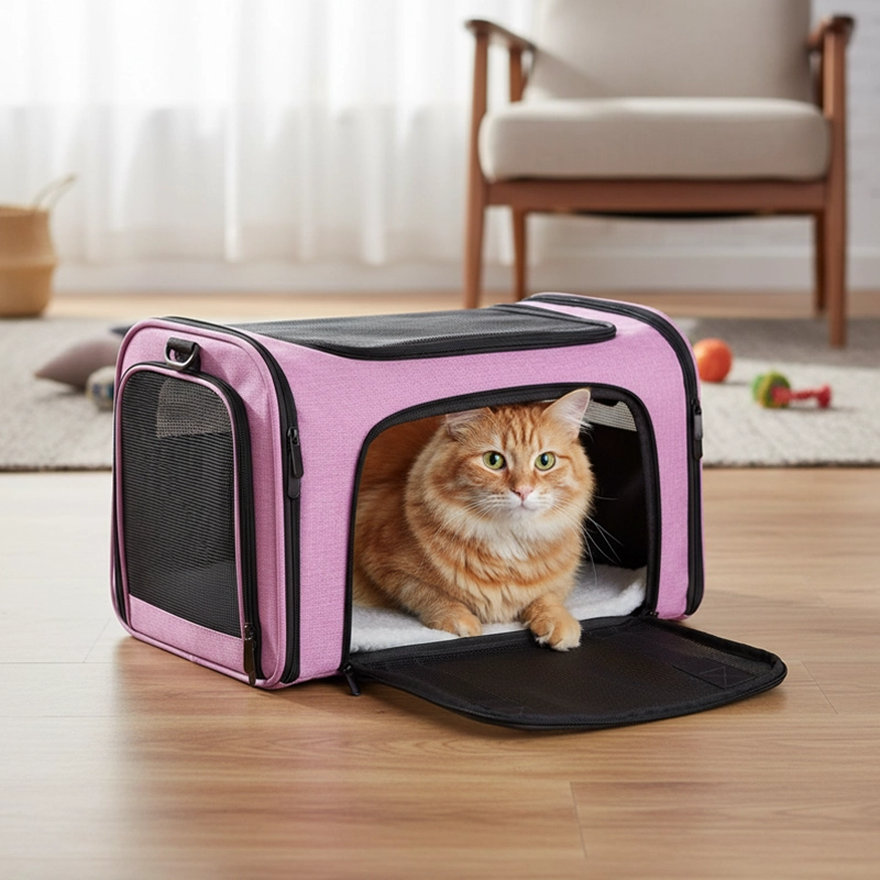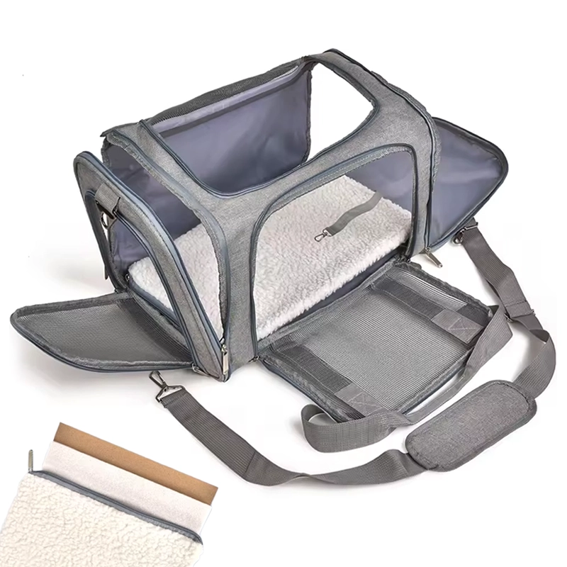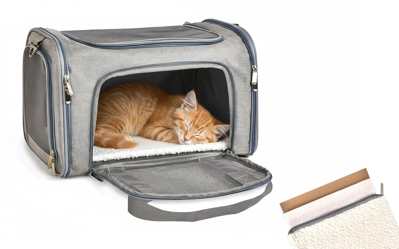 En aftagelig fleecepude skaber en blød seng til rolige lur. Netpanelerne lader frisk luft komme ind, hvilket hjælper kæledyrene med at slappe af under rejsen.