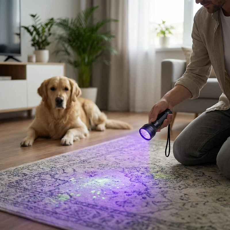 Ikke flere mystiske lugte i stuen! Primdog-lyset viser præcis, hvor jeg skal gøre rent. Meget hjælpsom for kæledyrsejere.