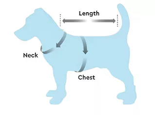 - 1. Mål din hunds ryglængde fra bunden af halsen til halen.