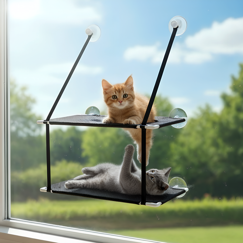 Virkelig glad for kattehængekøjen! Mine to nysgerrige pelsbolde tumler på den og bruger begge lag uden at den falder ned. Perfekt til mine livlige drenge.