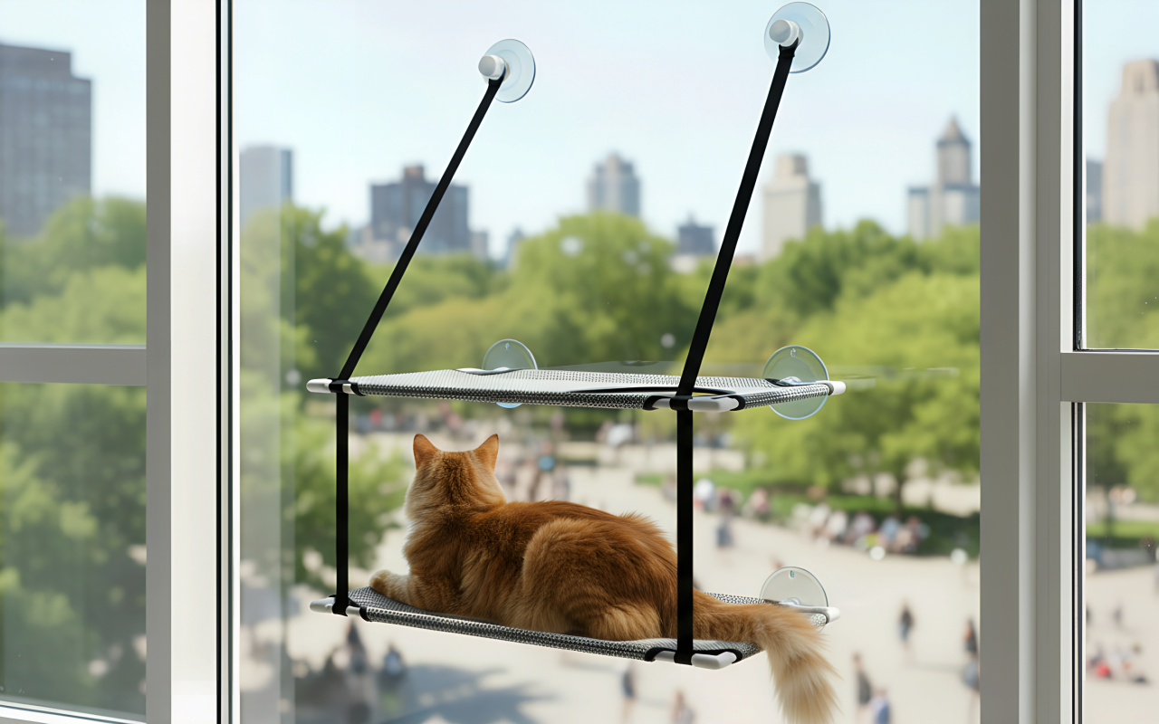 Holder op til 25 kg med sikre sugekopper og slidstærkt stof. Selv store eller legesyge katte forbliver støttet uden bekymring.