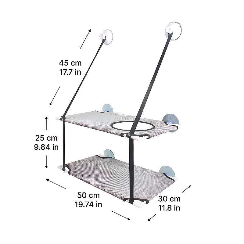 Lad enhver kat nyde frisk luft og skøn udsigt hver dag. Primdog Dobbelt Dæk Kattehængekøje holder kæledyret sikkert og rigtig glad indendørs. Stærke sugekopper fæstner den let på enhver vinduesoverflade. Letvægtsdele gør samlingen hurtig uden brug for værktøj.