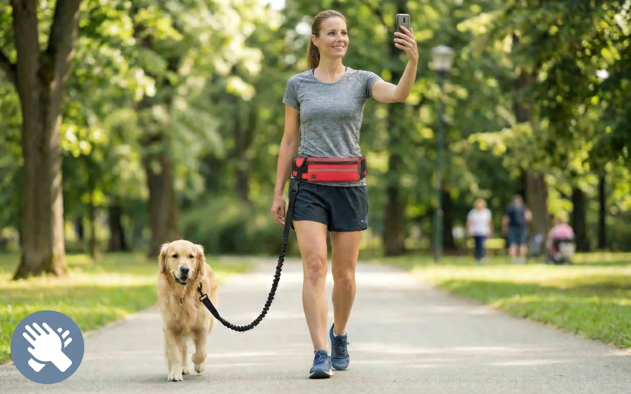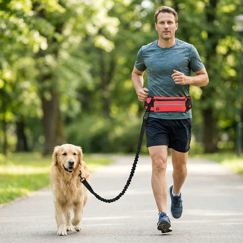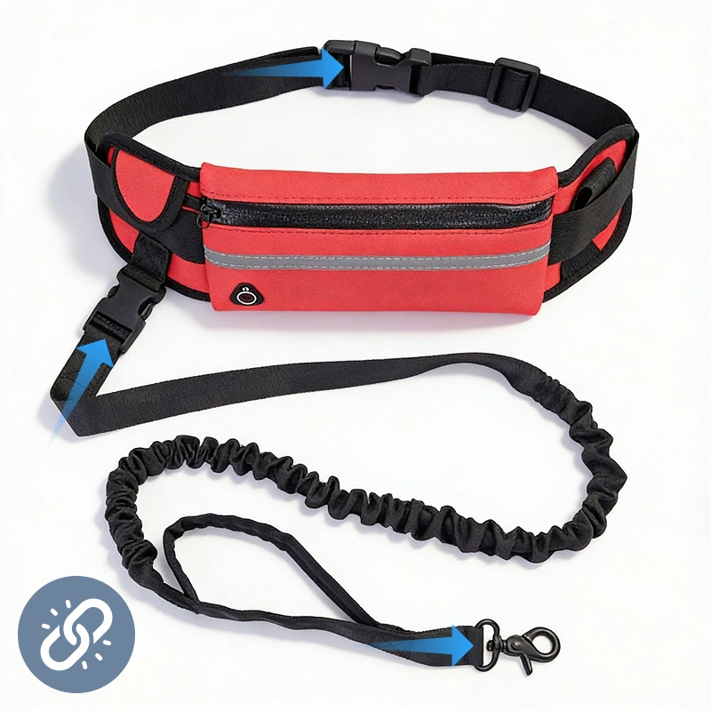 Nyd motion eller gåture uden besvær eller filtret udstyr. Primdog snorholder holder dit kæledyr tæt, mens du kan bevæge dig naturligt. Bær sikkert det nødvendige i den robuste mavetaske under udflugter.