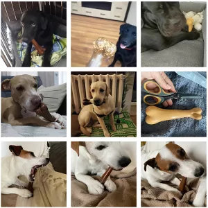 Min hyrde elsker helt klart sit nye benlegetøj. Smagen må være fantastisk, og det holder hende glad, mens jeg arbejder hjemmefra.