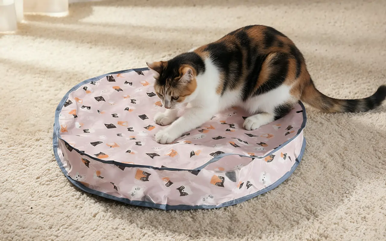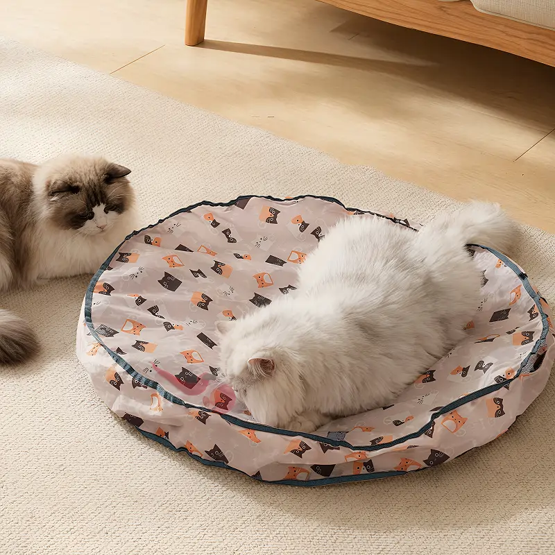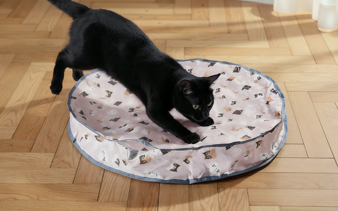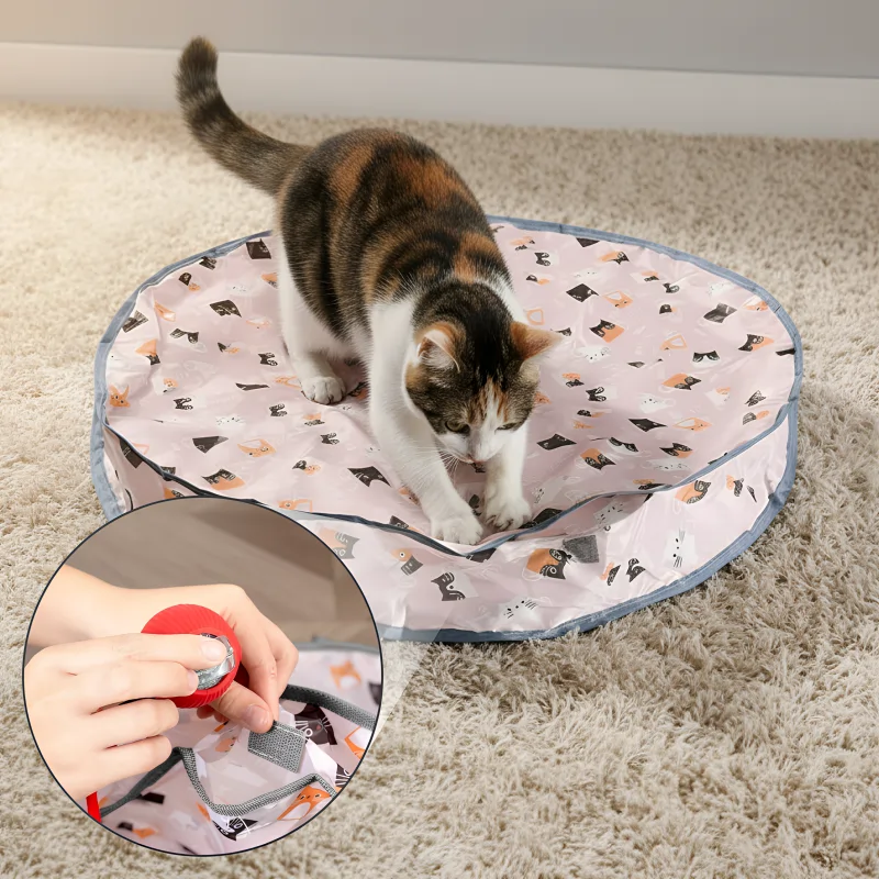 Primdog gør det nemt for enhver nysgerrig killing at have det sjovt indendørs. Læg yndlingsbolde eller godbidder under posen for endeløs spænding. Katte elsker at udforske, jage og springe ved hjælp af dette enkle gemmested. Det lette betræk er nemt at flytte eller opbevare.