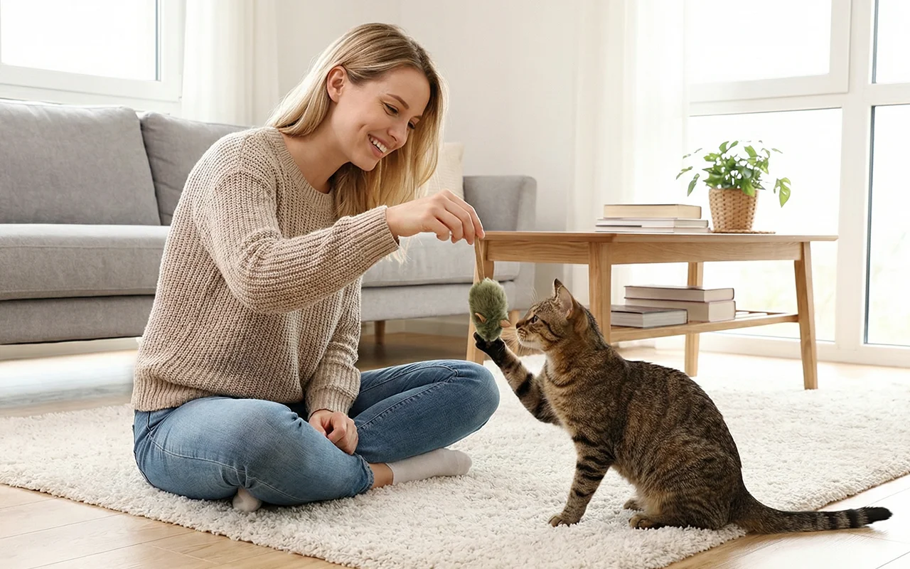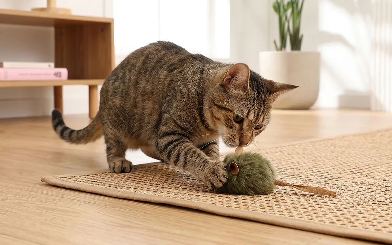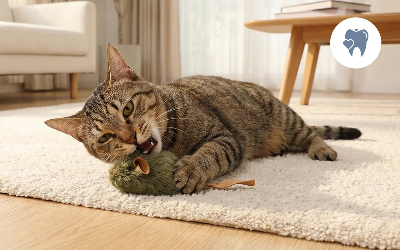 Katten elsker at tygge på denne mus, og hans ånde er friskere.